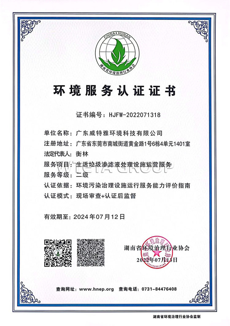 環(huán)境服務(wù)認(rèn)證證書(shū)