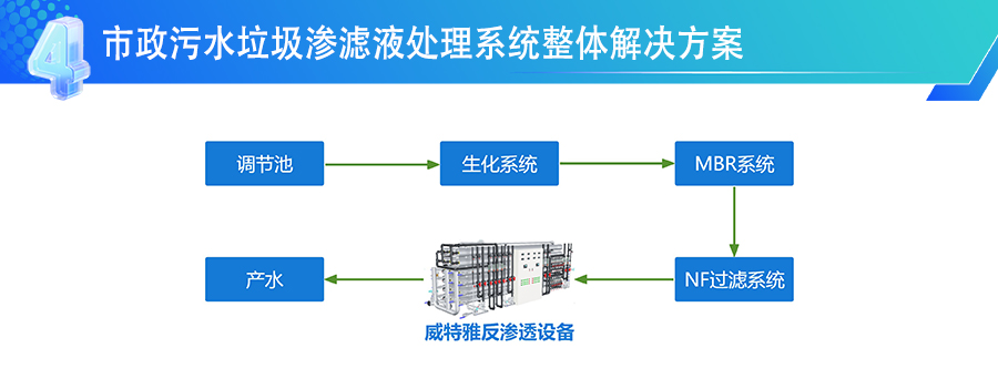 威特雅針對市政污水與垃圾填埋場滲濾液實際水質情況,推出了以RO反滲透系列產品為核心的反滲透系統(tǒng)的銷售、租賃和運營服務。輕松實現污水處理達標排放。