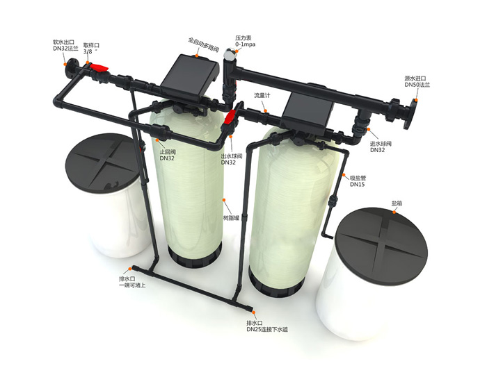 軟化水設備是由全自動軟水控制器、鹽箱、強酸型鈉離子陽樹脂、樹脂罐(一般為不銹鋼樹脂罐和玻璃鋼樹脂罐)、以及軟水器配件組成。通過水的流量和時間控制的方式發(fā)出指令給電磁閥或多路通伺服閥,來完成軟化水設備的供水和再生,是工業(yè)鍋爐、冷卻循環(huán)水、煉鋼、軋鋼、大型變壓 器、民用熱水鍋爐等場合中應用的硬水軟化處理設備。