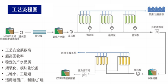 應用膜技術(shù)分對污染的截留率很高,初期、中期、晚期的滲濾液均能穩(wěn)定達到排放標準,尤其對于中期及晚期的老垃圾場滲濾液有著很大的優(yōu)勢。