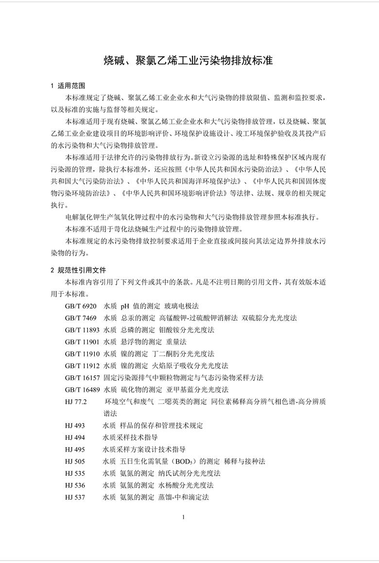 燒堿、聚氯乙烯工業(yè)水污染物排放標準