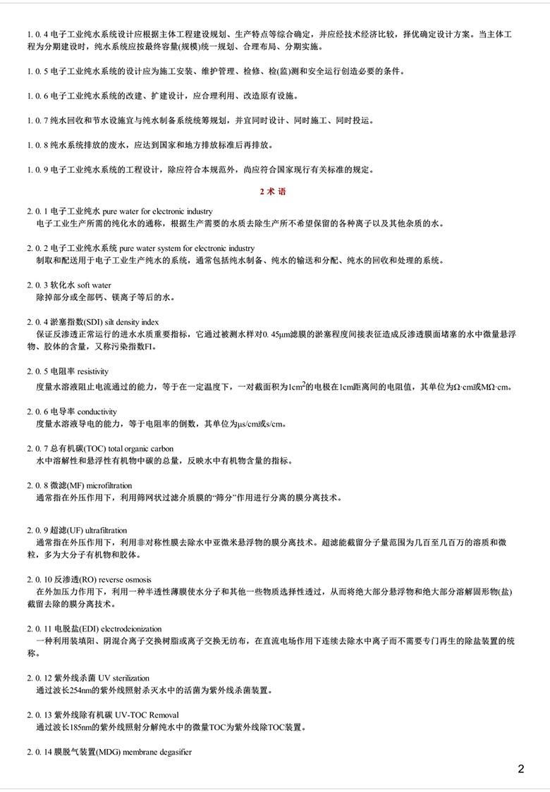 以下是電子工業(yè)純水系統(tǒng)設計規(guī)范(GB 50685-2011)文檔截圖: