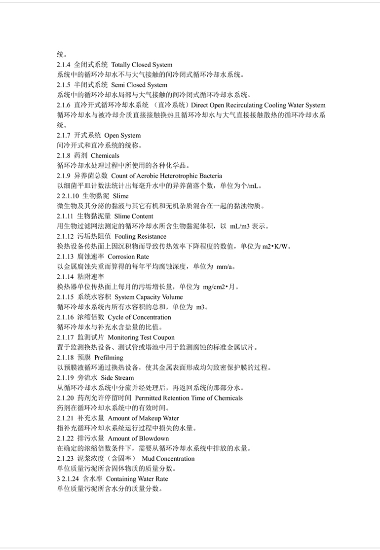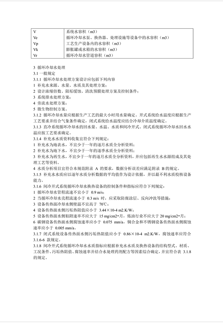 工業(yè)循環(huán)冷卻水處理設(shè)計(jì)規(guī)范