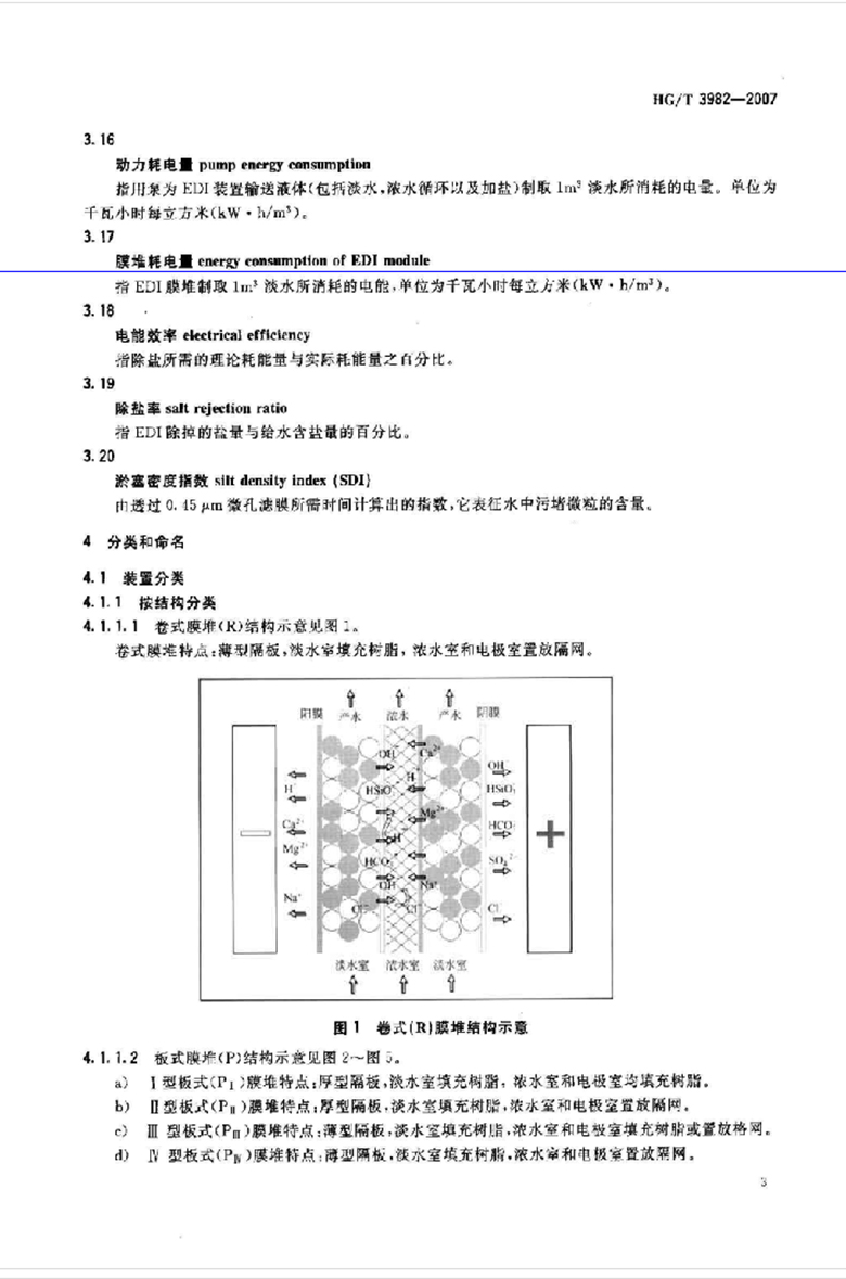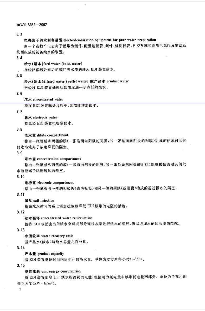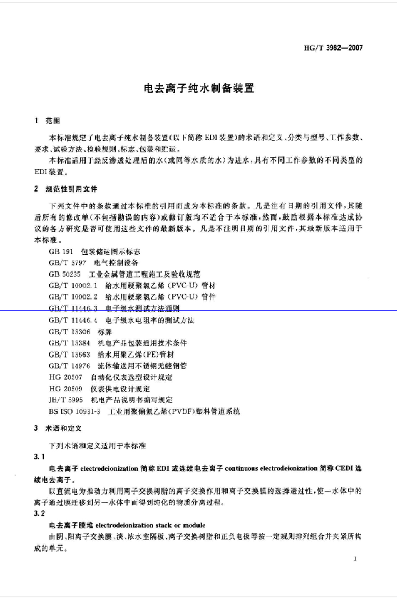 本標(biāo)準(zhǔn)適用于經(jīng)反滲透處理后的水為進(jìn)水,具有不同工作參數(shù)的不同類型的EDI裝置。