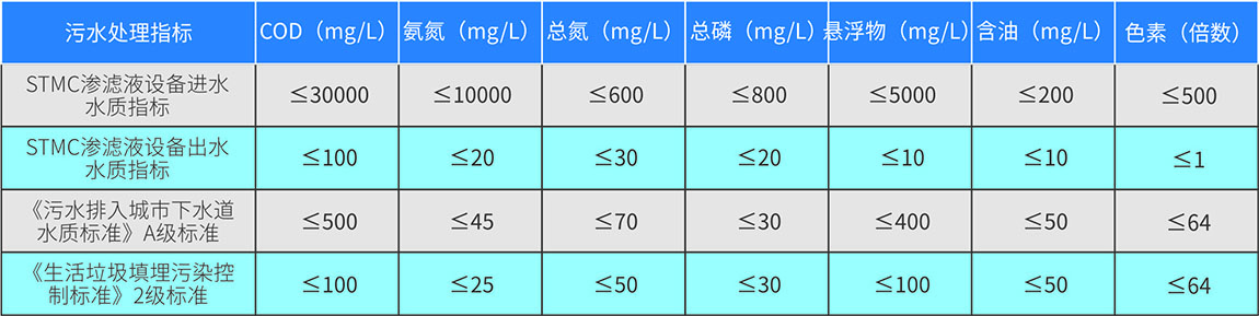 經(jīng)過(guò)中轉(zhuǎn)站STMC滲濾液處理系統(tǒng)處理后的垃圾滲濾液污水,可達(dá)到《污水排入城市下水道水質(zhì)標(biāo)準(zhǔn)》GB/T31962-2015,A級(jí)指標(biāo),可直接排放管網(wǎng)或達(dá)到《生活垃圾填埋污染控制標(biāo)準(zhǔn)》(GB16889-2008)表2排放標(biāo)準(zhǔn)。